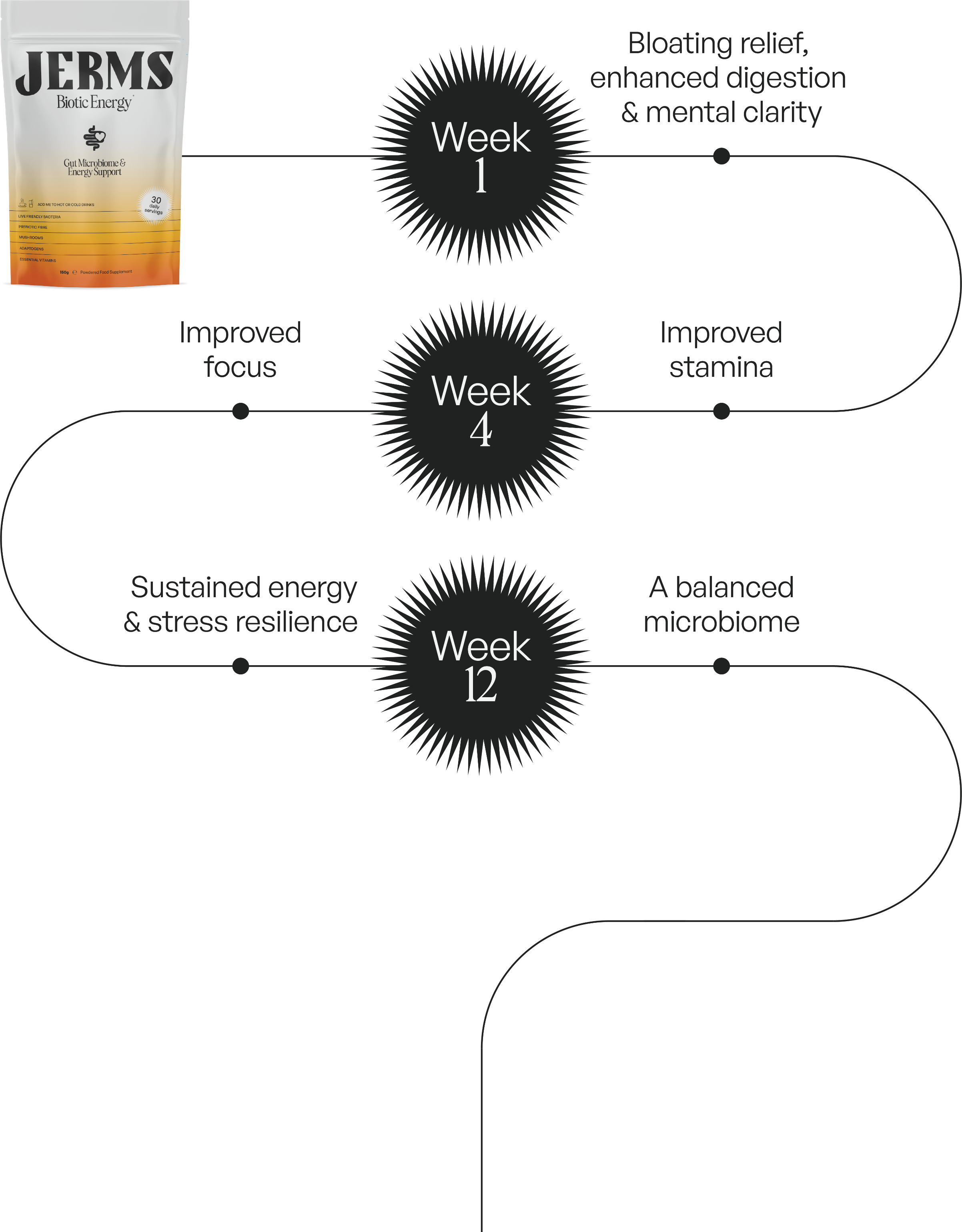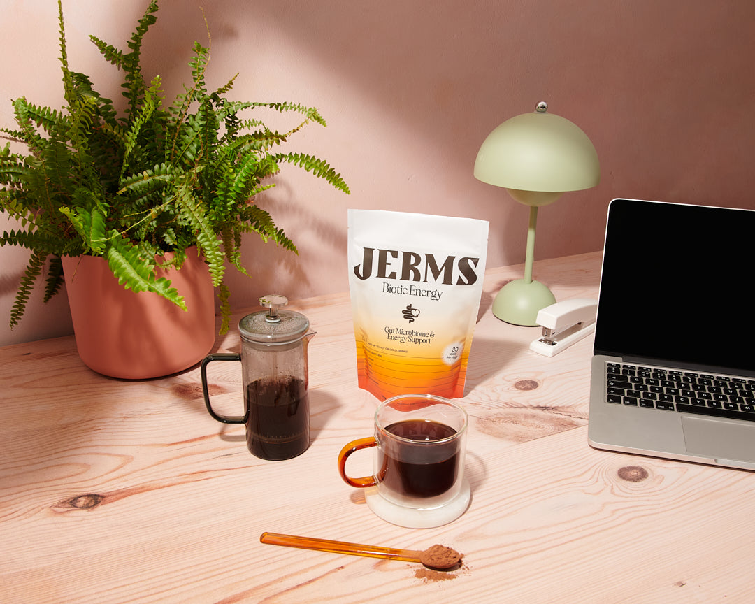 Not all probiotics are created equal. Our cutting-edge strain is clinically-proven to withstand the heat of your morning brew. Caffeine free so you can feed your JERMS, on your terms.