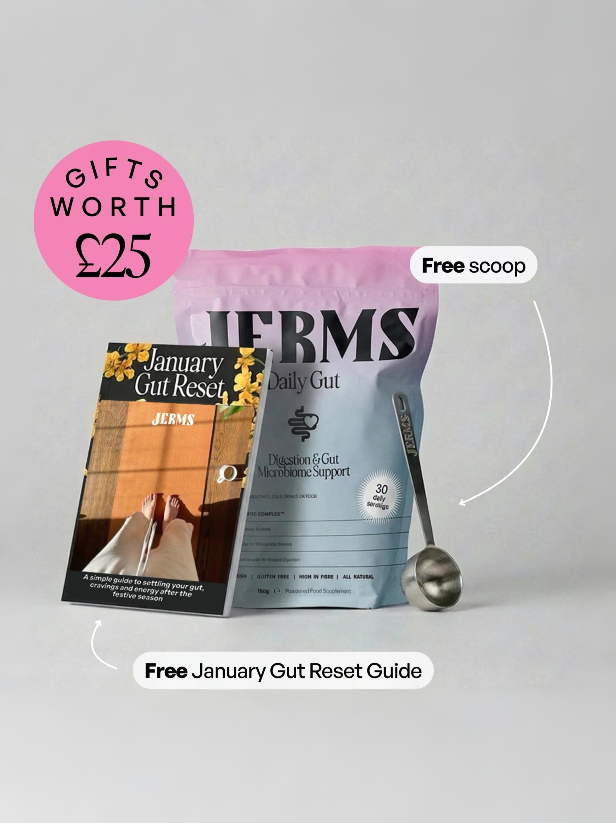 "Our guinea pig tested JERMS by adding a teaspoon of the flavourless powder to their daily protein shake each morning. They liked how easily it fitted into their daily routine and best of all, they said they soon noticed a “lighter” feeling, most probably from improved digestion.”