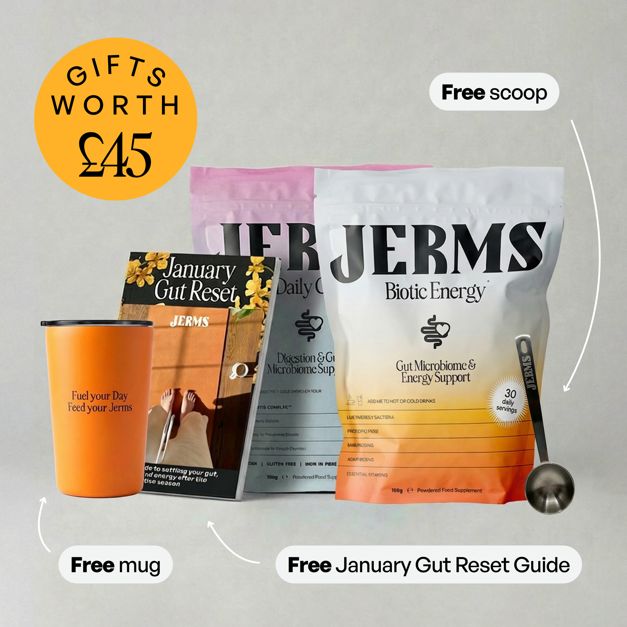 They’re designed to work in synergy. Daily Gut resets digestion and microbiome balance, while Biotic Energy builds calm, lasting energy and focus. Together, they support gut, mood and metabolism — the full mind–body system.